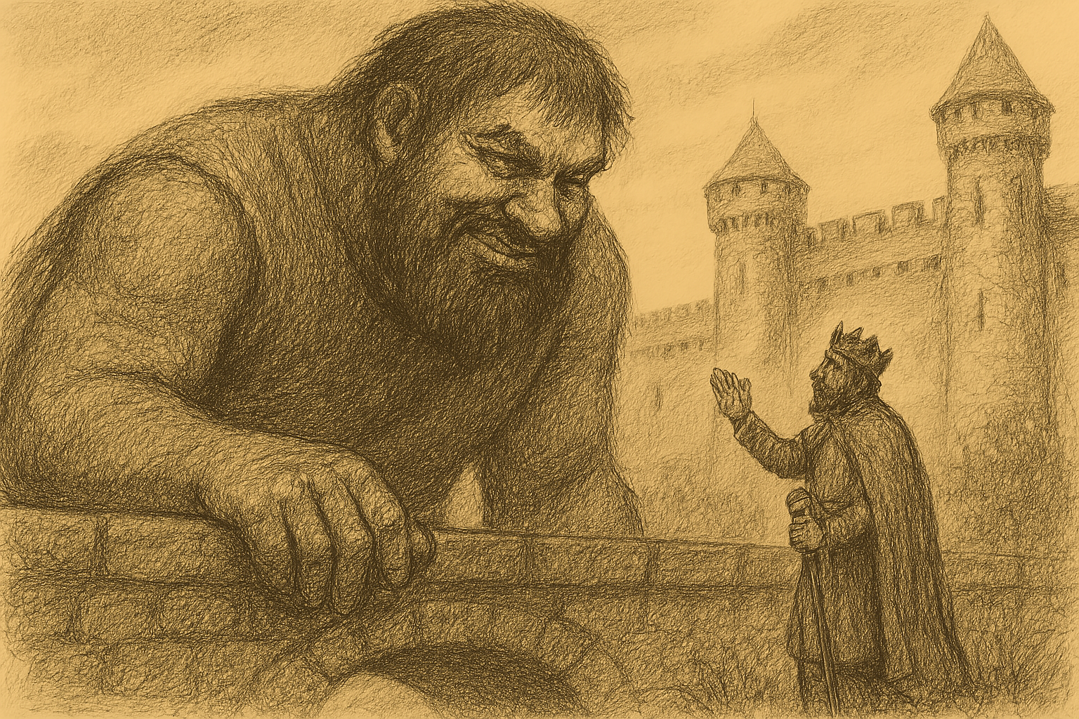 Un temible gigante amenaza a un pueblo, y cada que los guerreros retroceden del temor, el gigante crece un poco más. Hasta que lo enfrenta el mismísimo rey.